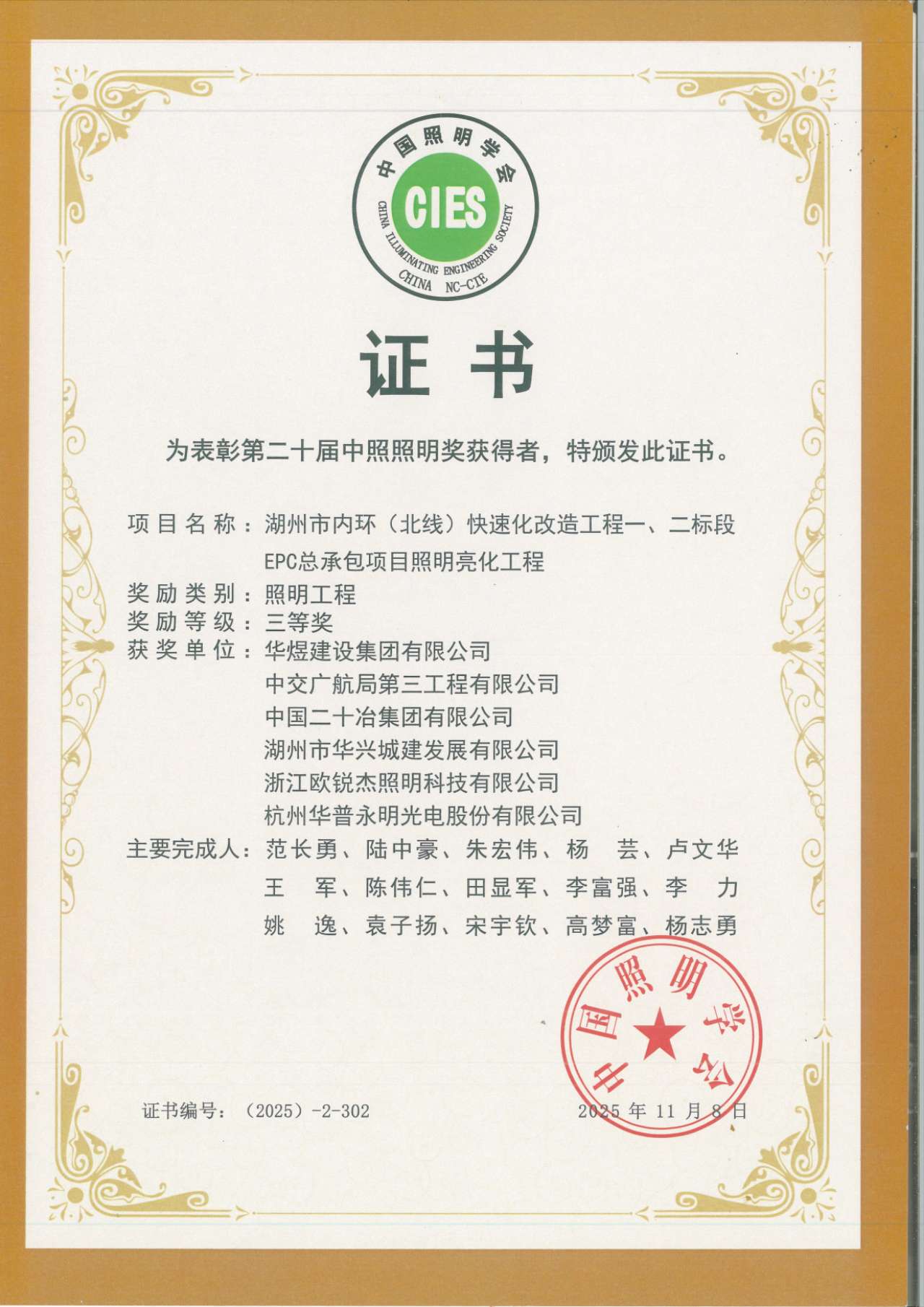 中照照明獎是經(jīng)國家科學技術部批準、國家科學技術獎勵工作辦公室登記的中國照明領域唯一獎項。自2005年由中國照明學會設立以來,中照照明獎便以其權威性和專業(yè)性,被譽為中國照明行業(yè)的至高榮譽。此次獲獎,不僅是對湖州快速路項目照明工程建設品質、施工難度及技術創(chuàng)新的高度認可,更充分彰顯了中國二十冶在照明工程領域卓越的技術能力和施工水平。